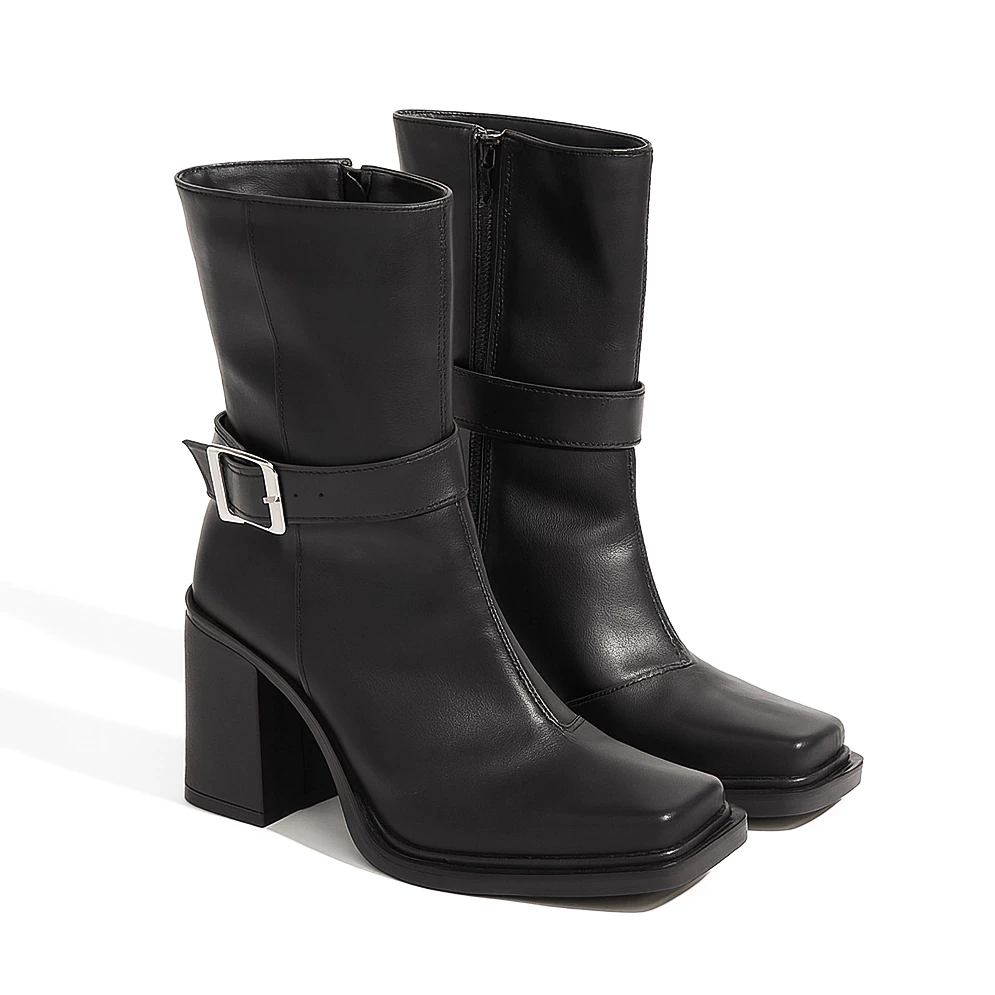 Las botinetas Velina son fabricadas en cuero sintético PU. Tiene forro interno, estribo con hebilla desmontable y terminación con punta cuadrada.